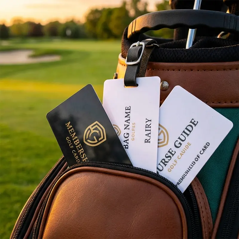 Golfkarten können sehr gut als Golf Bag Tags verwendet werden: Man befestigt sie einfach an der Golftasche – als Markenzeichen des Vereins, des Spielers oder als kreative Note. Das hängt davon ab, womit man die Golf Bag Tags bedrucken will: Mit dem Logo des Golfclubs, als Erinnerung an ein Golfturnier, mit dem Namen des Golfspielers oder mit einem ansprechenden Motiv und Slogan.