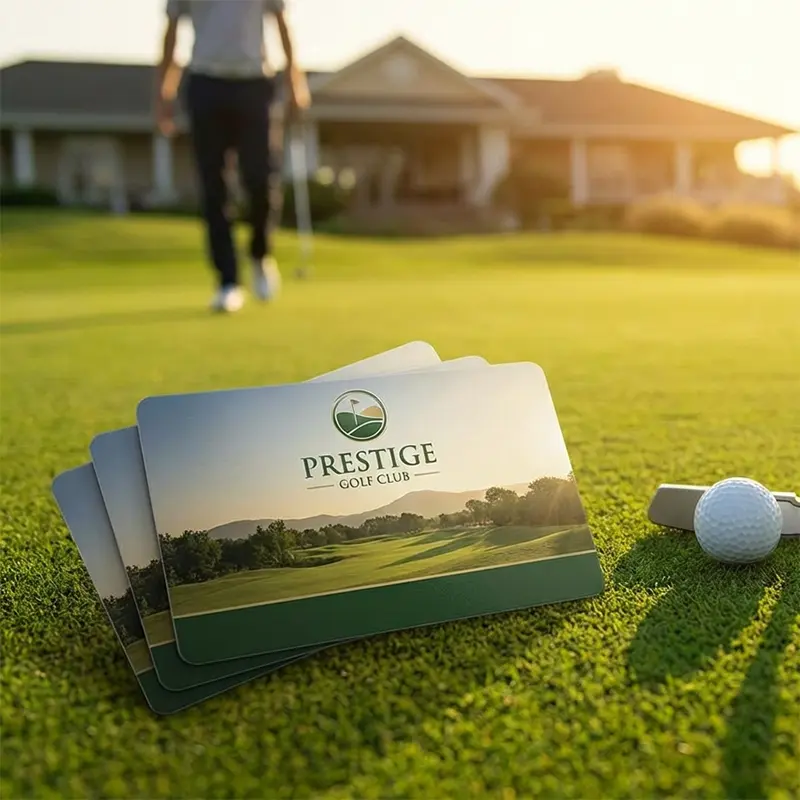 Wir produzieren für Sie Golfkarten aus hervorragendem Material, mit glänzender oder seidenmatter Oberfläche. Diese Plastikkarten sehen gut aus und sind sehr strapazierfähig – was zum Beispiel Karten aus Karton nicht leisten können. Profitieren Sie von unserer Erfahrung und den vielen Optionen, die den Plastikkarten die passenden Funktionen und Vorteile verleihen.